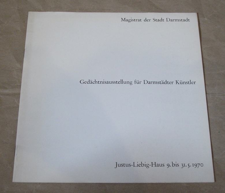 Gedächtnisausstellung für Darmstädter Künstler. Justus-Liebig-Haus, 9. – 31. 5. 1970. Darmstadt: Magistrat, 1970. 22 cm. [24] S., überwiegend Ill. Geheftet. Kanten etw. bestoßen. Leichte Gebrauchsspuren.
