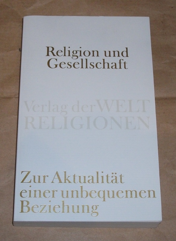 Bernius, Volker u.a. (Hrsg.): Religion und Gesellschaft. zur Aktualität einer unbequemen Beziehung; [Dokumentationsband zum Funkkolleg „Religion und Gesellschaft“ des Hessischen Rundfunks (hr2-kultur) (31.10.2009 – 15.5.2010)]. 1. Aufl. Berlin: Verl. der Weltreligionen, 2010. 18 cm, 300 S. TB. Leichte Gebrauchsspuren. Verlag der Weltreligionen Taschenbuch Bd. 17.