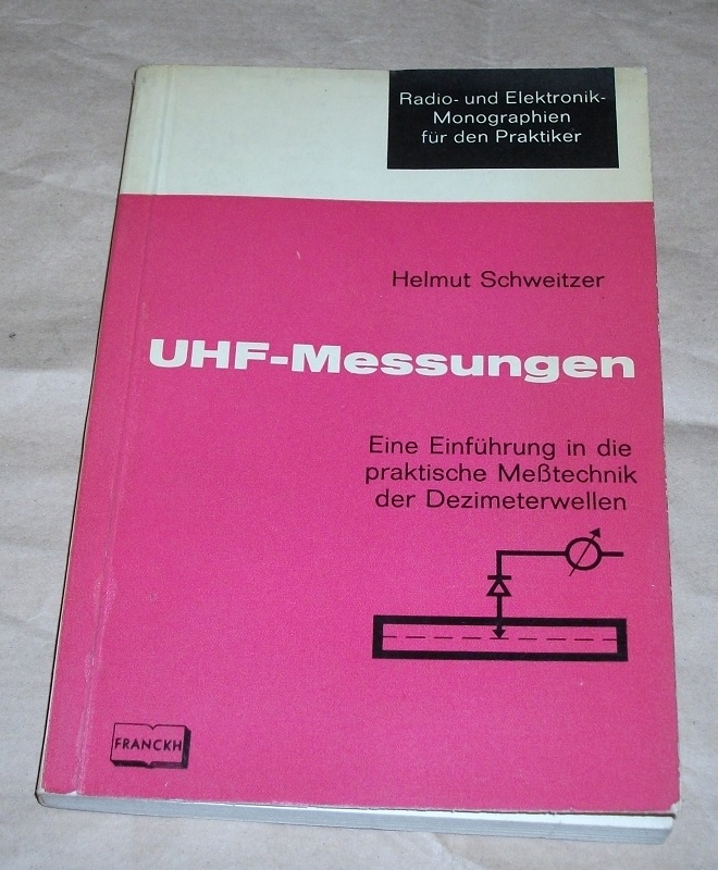 Schweitzer, Helmut: UHF-Messungen. Eine Einführung in die praktische Meßtechnik der Dezimeterwellen. Stuttgart, Franckh, 1962. 19 cm, 97 S. graph. Darst. Kart. Ecken bestoßen / mit Knickspuren, Einband u. Schnitt gebräunt, Schnitt fleckig. Deutliche Gebrauchsspuren. Radio- und Elektronik-Monographien für den Praktiker.