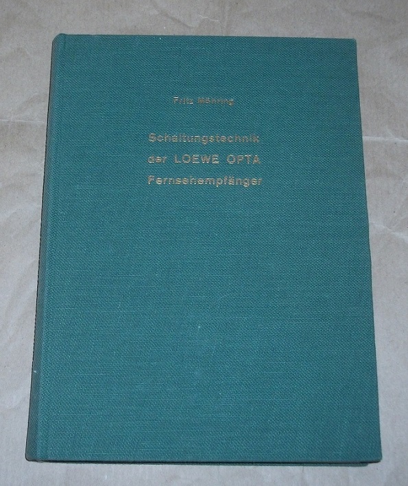 Möhring, Fritz: Schaltungstechnik der Loewe-Opta-Fernsehempfänger. Hrsg. von der Werbeabteilung der Loewe Opta AG. 1. Aufl. Coburg: A. Roßteutscher o.J. 21 cm, 284 S. Ln. Einband am Rücken etw. ausgeblichen. Block im Vorsatz etw. angebrochen. Einzelne Anmerkungen. Mit Widmung des Verfassers im Vorsatz. Signiert Kreuznach, 15.1.63.