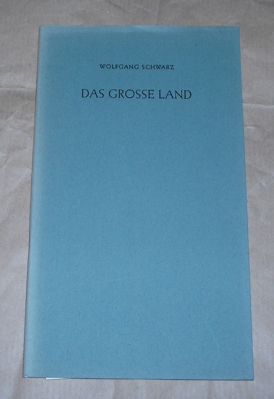 Schwarz, Wolfgang. Das grosse Land. Rede zum Volkstrauertag in Darmstadt ; Ansprache an d. Jugend vor d. Kriegstotenkapelle bei Neutsch i. Odw., 16. Nov. 1963. Hrsg. von Wilhelm E. Zinsel, Neutsch i. ODW. Darmstadt: Eduard Roether 1964 22 cm, 14 Bl mit 1 Abb. Geheftet. Einband etw. lichtrandig. Leichte Gebrauchsspuren.
