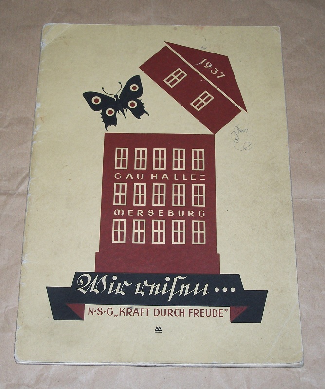 N S G „Kraft durch Freude“ Gau Halle-Merseburg: Urlaubs-Reisen 1937. Reisekatalog mit Preisen. Berlin: verlag der deutschen Arbeitsfront 1937 29 cm, 36 S. mit Ill. Geheftet. Einband mit deutlichen Gebrauchsspuren (geknickt, angeschmutzt / fleckig, am Rücken eingerissen, Ecken bestoßen. Innen sauber u. gut erhalten.