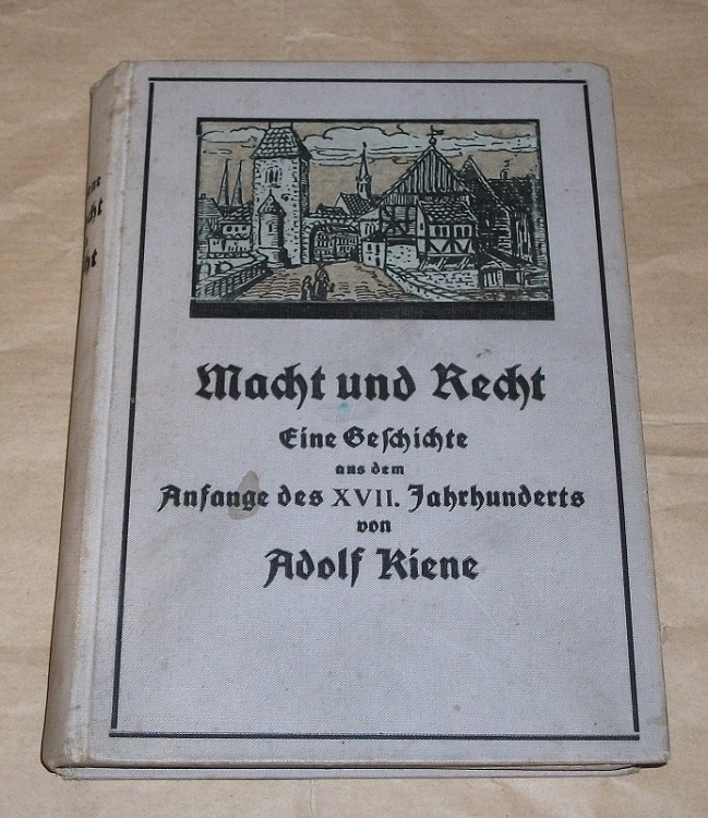 Kiene, Adolf: Macht und Recht. Eine Geschichte aus dem Anfange des XVII. Jahrhunderts. Buchschmuck von Karl Hildebrandt. Wolfenbüttel: Julius Zwißler 1908 19 cm, 324 S. m. Ill., altdeutsche Schrift. Ill. Ln. Deutliche Gebrauchsspuren. Einband u. Schnitt und Vorsätze gebräunt und fleckig, schief gelesen, Name a. V.