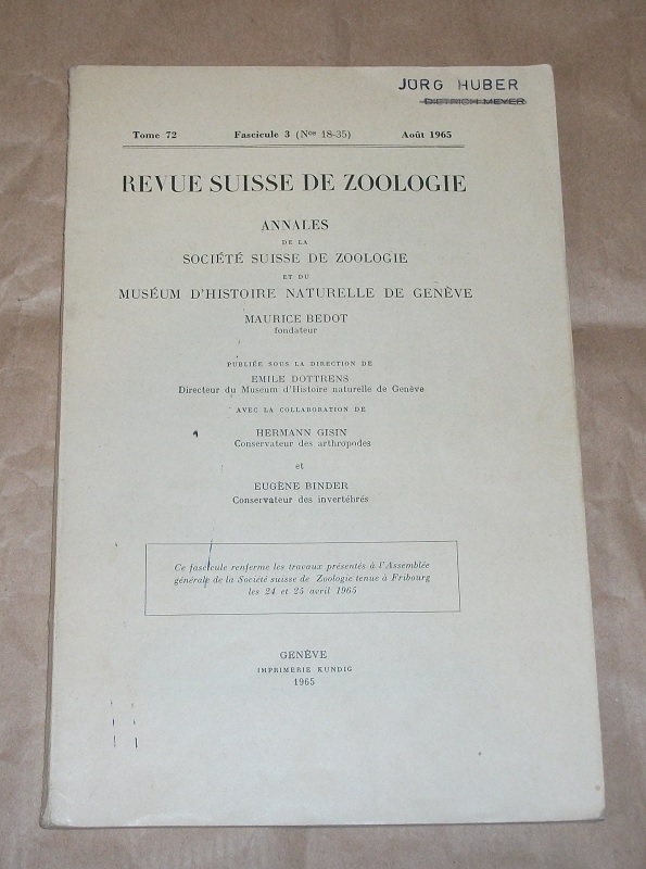 Revue suisse de zoologie. Tome 72 Fascicule 3 (Nos 18-35). annales de la Société Zoologique Suisse et du Museé d’Histoire Naturelle de Genève = Swiss journal of zoology. Genève: Kundig 1965 24 cm, S. 569 – 694 mit Ill. Kart. Name a. Umschlag, 1 Artikel mit Anstreichungen u. Anmerkungen. Sonst gut erhalten.