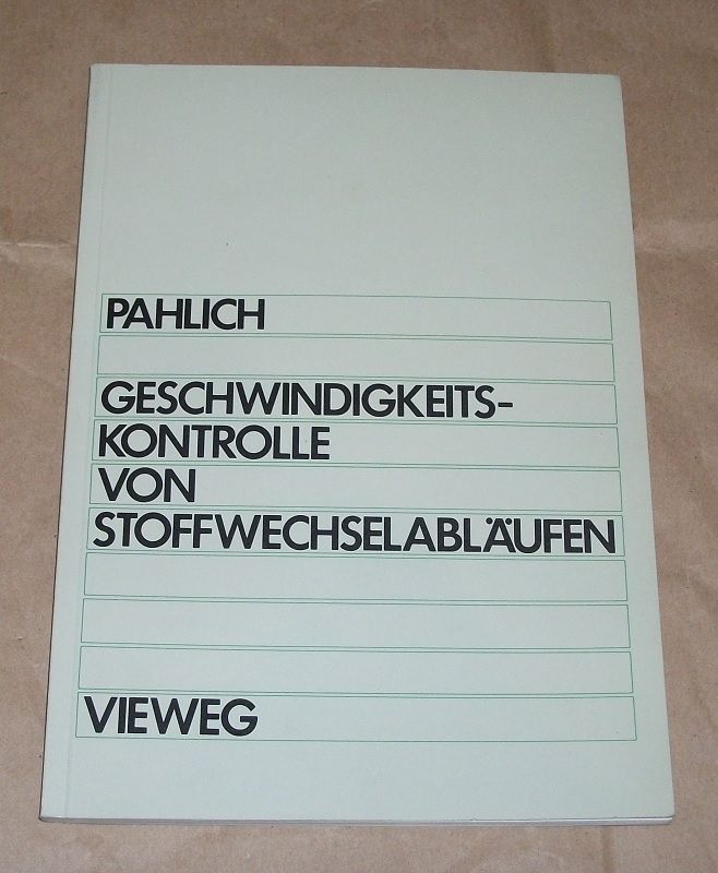 Pahlich, Edwin: Prinzipien der Geschwindigkeitskontrolle von Stoffwechselabläufen. Orintierungshilfe für d. prakt. Arbeit. Braunschweig/Wiesbaden, Vieweg, 1984. 23 cm. XIV, 148 S. graph. Darst. Kart. Anstreichungen im Text, sonst gut erhalten.