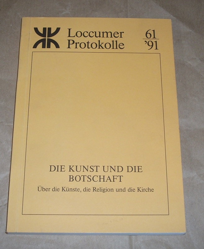 Ermert, Karl (Hrsg.): Die Kunst und die Botschaft. über die Künste, die Religion und die Kirche ; [Dokumentation einer Tagung der Evangelischen Akademie Loccum vom 15. bis 17. November 1991]. 1. Aufl. Rehburg-Loccum: Evang. Akad. Loccum, Protokollstelle, 1992. 21 cm. 190 S. Ill. Kart. Leichte Gebrauchsspuren. Loccumer Protokolle, 1991,61.