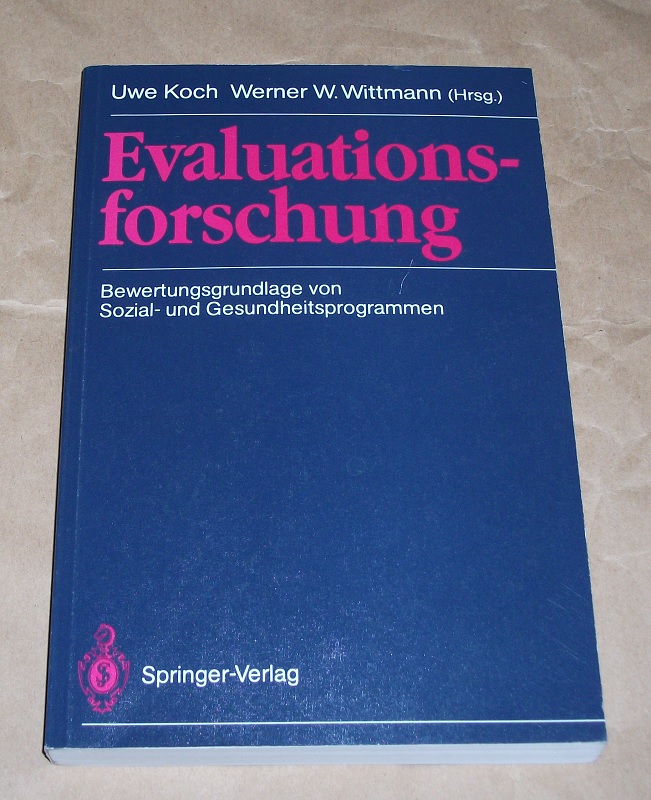 Koch, Uwe / Werner W. Wittmann (Hrsg.): Evaluationsforschung. Bewertungsgrundlage von Sozial- und Gesundheitsprogrammen. Berlin/Heidelberg/New York/London/Paris/Tokyo/Hong Kong, Springer, 1990. 24 cm. XI, 315 S. 22 graph. Darst. Kart. Umschlag etw. geknickt / Kanten leicht berieben, Schnitt etw. angeschmutzt. Name a. V. Gut erhalten.