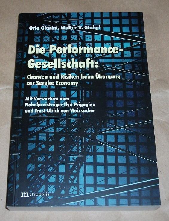 Giarini, Orio u. Walter R. Stahel: Die Performance-Gesellschaft. Chancen und Risiken beim Übergang zur Service economy. Marburg: Metropolis-Verl., 2000. 21 cm. 320 S. Kart. Rücken mit Knickspur vom lesen, Schnitt gebräunt. Gut erhalten.