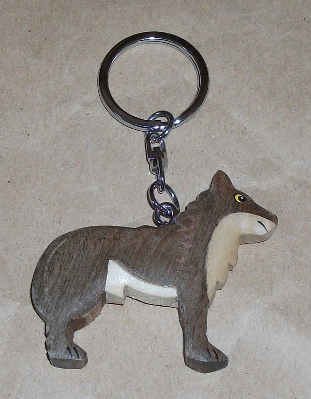Schlüsselanhänger Wolf, Holz Länge (ohne Kette) ca. 5 cm. Neuware.