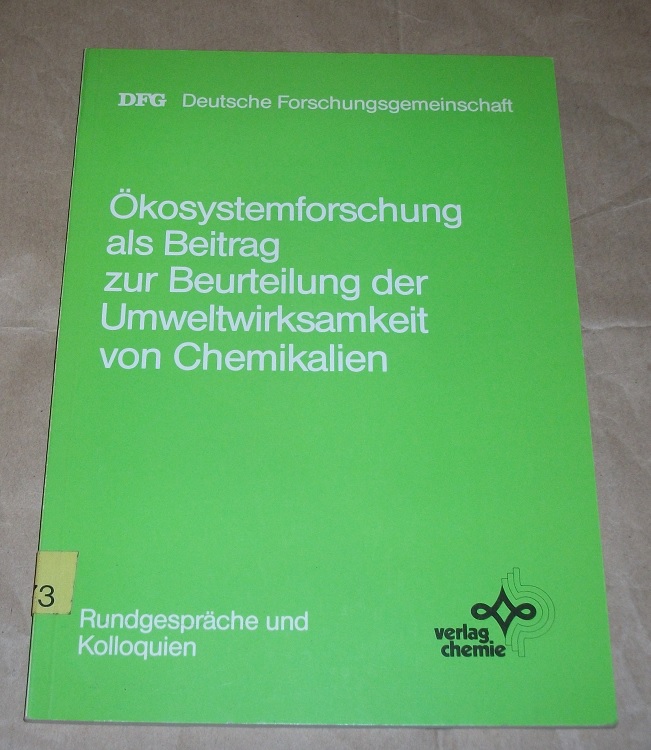 Ökosystemforschung als Beitrag zur Beurteilung der Umweltwirksamkeit von Chemikalien. Bericht über e. Symposium, d. von d. Arbeitsgruppe „Umweltwirksamkeit von Chemikalien“ d. Senatsausschusses für Umweltforschung d. Dt. Forschungsgemeinschaft am 20. u. 21. November 1980 in Würzburg veranst. wurde. Weinheim: Verlag Chemie, 1983. 24 cm. VI, 75 S. Kart. Bibliotheks-Exemplar mit entsprechenden Kennzeichen. Sonst leichte Gebrauchsspuren. Rundgespräche und Kolloquien / DFG, Deutsche Forschungsgemeinschaft.