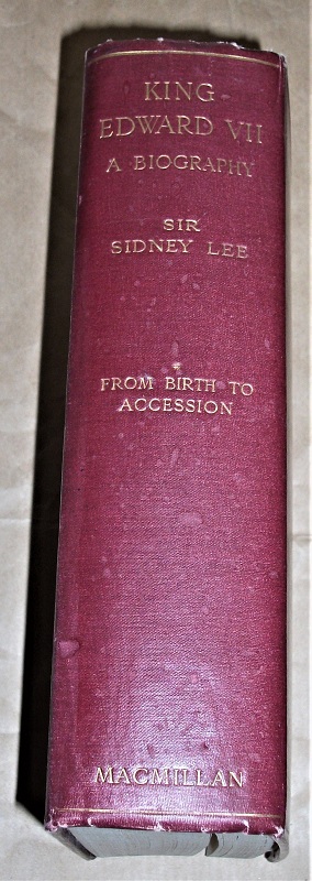Lee, Sidney: King Edward VII. Vol. 1. From birth to accession 9th November 1841 to 22nd January 1901. London: Macmillan, 1925. 22,5 cm, XII, 831 S. Ill., graph. Darst. Ln., Kopfgoldschnitt. Einband u. Schnitt fleckig, Kapitale bestoßen. Innen z. T. braunfleckig / Anstreichungen mit Bleistift (radierbar). Block im Vorsatz angebrochen. Deutliche Gebrauchsspuren.