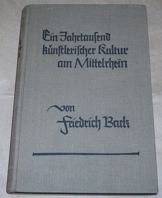 Back, Friedrich: Ein Jahrtausend künstlerischer Kultur am Mittelrhein. Darmstadt: Historischer Verein für Hessen, 1932. 8. 247 S. 42 S. Abb., altdeutsche Schrift. Ln. Gut erhalten. Einbandecken etw. bestoßen, Schnitt gebräunt und etw. fleckig.
