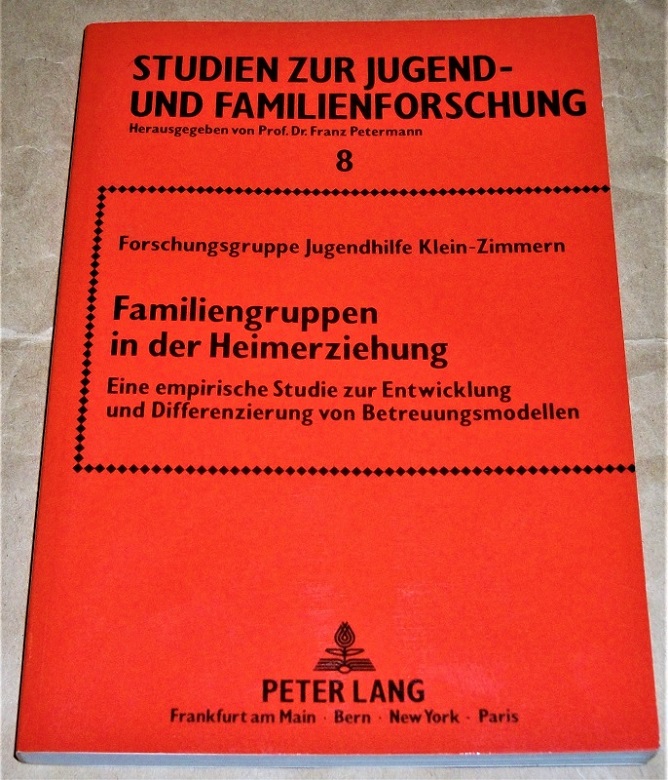 Forschungsgruppe Jugendhilfe Klein-Zimmern: Familiengruppen in der Heimerziehung. Eine empirische Studie zur Entwicklung und Differenzierung von Betreuungsmodellen. Frankfurt am Main/Bern/New York/Paris, Lang, 1992. 21 cm. 267 S. graph. Darst. Kart. Leichte Gebrauchsspuren. Schnitt etw. angeschmutzt, Name hinten im Buch. Studien zur Jugend- und Familienforschung, Bd. 8.