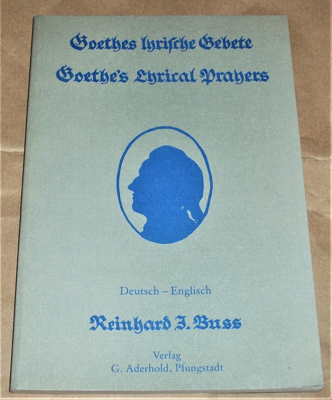 Buss, Reinhard J.: Goethes lyrische Gebete – Goethe´s Lyrical Prayers. Deutsch- Englisch. Einige Gedanken – Some reflections. Pfungstadt: G. Aderhold 1986 23 cm, 187 S. mit Ill. Kart. Kanten leicht bestoßen, Schnitt etw. fleckig. Gut erhalten.