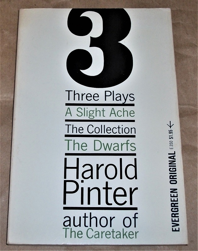 Pinter, Harold: Three plays. A slight ache, The collection [and] The dwarfs. New York: Grove Press, c1962. 21 cm. 108 p illus. Kart. Leichte Gebrauchsspuren. Umschlag u. Schnitt etw. gebräunt. Evergreen original, E-350.