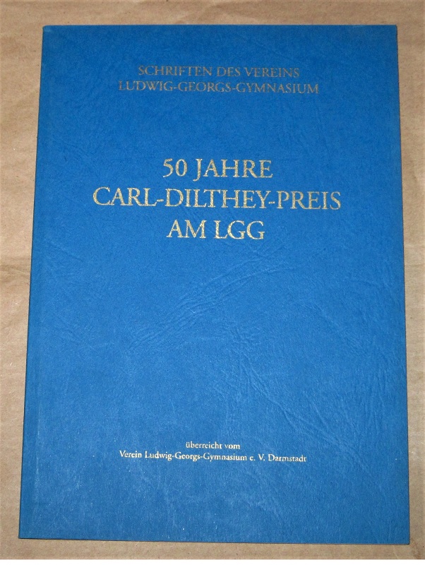 Martin, Wolfgang [Hrsg.]: 50 Jahre Carl-Dilthey-Preis am LGG. Eine Erinnerung. Darmstadt: Schlapp, 2003. 21 cm, 62 S. : Ill. kart. Leichte Gebrauchsspuren. Schriften des Vereins Ludwig-Georgs-Gymnasium