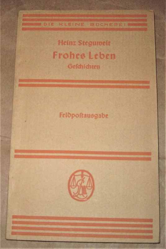 Steguweit, Heinz: Frohes Leben. Feldpostausgabe. Geschichten. 81.-100. Tsd. München: Albert Langen/Georg Müller, 1943. 17,5 cm, 55 S. Kart. Papier gebräunt, Ecken etw. bestoßen. Leichte Gebrauchsspuren. Die kleine Bücherei, 34.