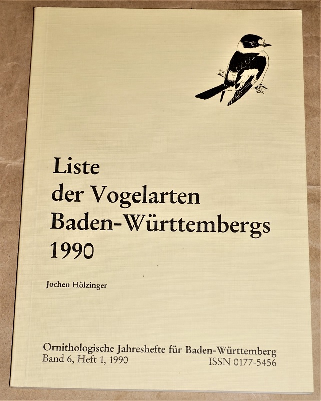 Hölzinger, Jochen: Liste der Vogelarten Baden-Württembergs 1990. Reutlingen: Koch, 1990. 22 cm, 56 S. Kart. Leichte Gebrauchsspuren. Ornithologische Jahreshefte für Baden-Württemberg, 06:1.