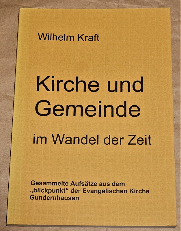 Kraft, Wilhelm: Kirche und Gemeinde im Wandel der Zeit. Gesammelte Aufsätze aus dem „blickpunkt“ der Evangelischen Kirche Gundernhausen. Gundernhausen: Evang. Kirchengemeinde, 2000. 21 cm. 170 S. Ill. Kart. Umschlag z.T. ausgeblichen, sonst leichte Gebrauchsspuren.