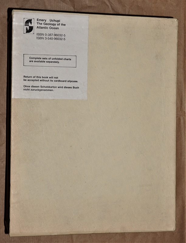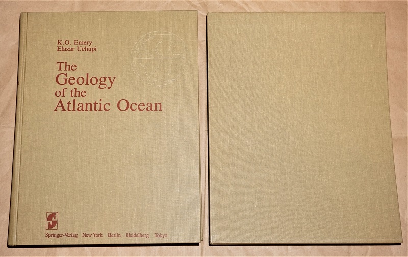 Emery, Kenneth O.: The geology of the Atlantic ocean. New York/Berlin/Heidelberg/Tokyo, Springer, 1984. 29 cm Kt.-Beil. (23 Bl. in Schuber). XIX, 1050 S. 399 graph. Darst. u. Kt. Ln. im Schuber. Kapital etw. bestoßen, Block etw. gebogen. Äußerer Schuber angeschmutzt. Sonst gut erhalten.