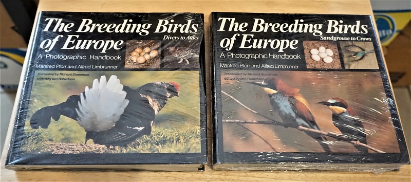Pforr, Manfred u. Alfred Limbrunner: The breeding birds of Europe. Band 1 + 2. A photographic handbook 1: Divers to Auks. 2: Sandgrouse to Crows. 2 Bände. London: Croom Helm, c1981. 20,5 x 22 cm quer, Ln., SU. Original eingeschweißt. Leichte Gebrauchsspuren.