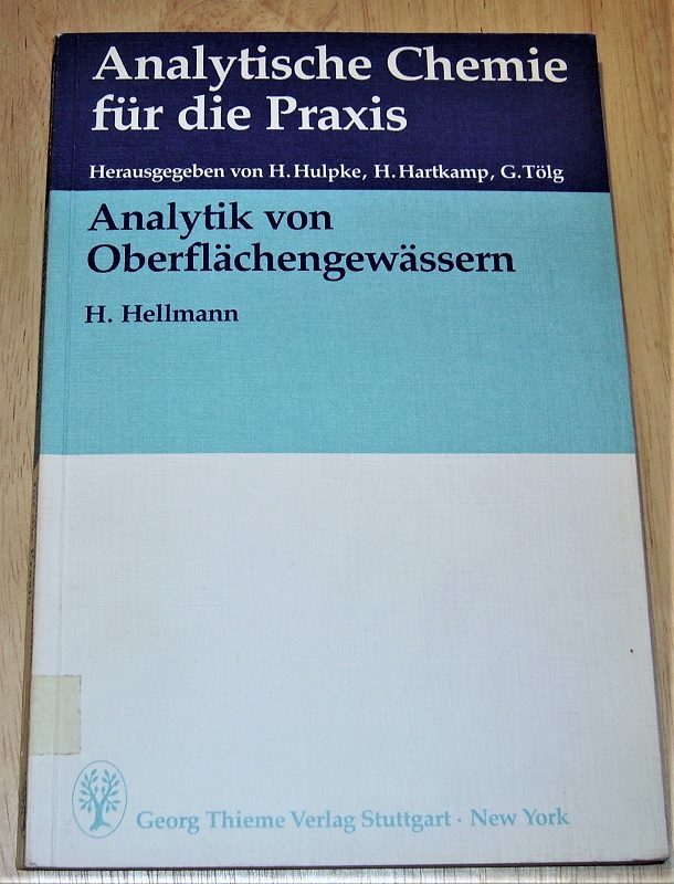 Hellmann, Hubert: Analytik von Oberflächengewässern. Stuttgart/New York: Thieme, 1986. 23 cm. XI, 225 S. 186 graph. Darst. Kart. Ehemaliges Bibliotheks-Exemplar mit entsprechenden Kennzeichen, Umschlag auf der Rückseite fleckig. Innen sauber und gut erhalten. Analytische Chemie für die Praxis.