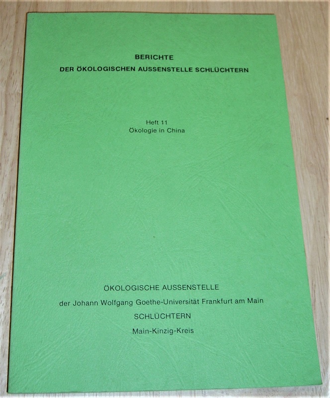 Ökologische Aussenstelle Schlüchtern der Johann Wolfgang Goethe-Universität Frankfurt / M. (Hrsg.): Berichte der Ökologischen Aussenstelle Schlüchtern. Heft 11. Ökologie in China. Schlüchtern: Ökolog. Aussenstelle, 1984. 21 cm. 180 S. Ill. Kart. Leichte Gebrauchsspuren. Mit handschriftl. Widmung im Vorsatz. Berichte der Ökologischen Aussenstelle Schlüchtern, H. 11.