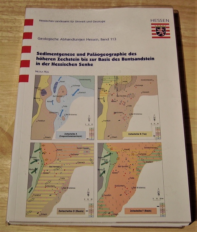 Hug, Nicola: Sedimentgenese und Paläogeographie des höheren Zechstein bis zur Basis des Buntsandstein in der Hessischen Senke. Wiesbaden: Hess. Landesamt für Umwelt und Geodäsie, 2004. 237 S. Ill., graph. Darst., Kt. CD-ROM (12 cm), 4 Beil. Kart. Leichte Gebrauchsspuren. Geologische Abhandlungen Hessen, 113.
