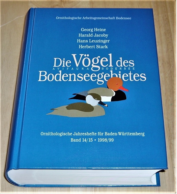 Heine, Georg: Die Vögel des Bodenseegebietes. Vorkommen und Bestand der Brutvögel, Durchzügler und Wintergäste. Avifauna Bodensee. Ludwigsburg: Ornithologische Arbeitsgemeinschaft Bodensee, 1999. 22 cm, 847 S. Pp. Leichte Gebrauchsspuren. Kl. Stempel a. T. Ornithologische Jahreshefte für Baden-Württemberg, 14/15. ISSN: 0177-5456 Aus der aufgelösten Bibliothek des Offenbacher Vereins für Naturkunde.