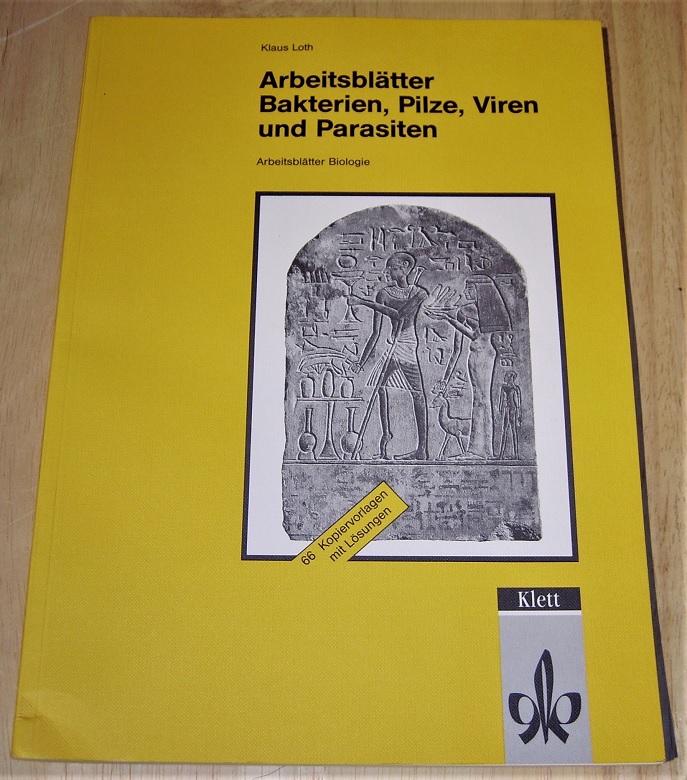 Loth, Klaus: Arbeitsblätter Bakterien, Pilze, Viren und Parasiten. [66 Kopiervorlagen mit Lösungen]. 1. Aufl., 1. Dr. Stuttgart/Düsseldorf/Berlin/Leipzig, Klett-Schulbuchverl, 1995. 30 cm. 128 S. Kart. Unteres Kapital gestaucht, sonst leichte Gebrauchsspuren. Keine Einträge. Arbeitsblätter Biologie.