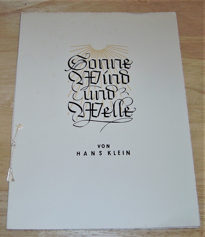 Klein, Hans: Sonne Wind und Welle. Gedanken am Meer mit Bildern nach Originalaufnahmen von Dr. Kurt Struwe. Lengerich i. W.: Kleins Buch- und Kunstverlag o.J. 25 cm, 16 n.n.S. mit Ill. Geheftet. Leichte Gebrauchsspuren. Untere Ecke etw. geknickt.