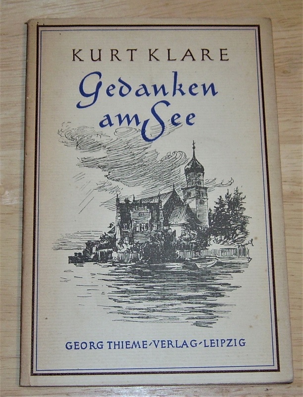 Klare, Kurt: Gedanken am See. Skizzen. 2. Aufl. Leipzig: Georg Thieme 1941 [Ausg. 1940]. kl. 8. 52 S. Kart. Umschlag u. Schnitt gebräunt / etw. braunfleckig. Sonst gut erhalten.
