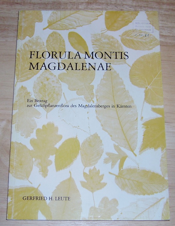 Leute, Gerfried Horand: Florula Montis Magdalenae. Ein Beitrag zur Gefässpflanzenflora des Magdalensberges in Kärnten. Klagenfurt: Naturwiss. Verein für Kärnten, 1980. 23 cm. 155 S. Ill., graph. Darst., Kt. Kart. Kl. Stempel a. Umschlag, Umschlag auf der Rücksite angeschmutzt. Sonst leichte Gebrauchsspuren. Carinthia : 2, Naturwissenschaftliche Beiträge zur Heimatkunde Kärntens : Sonderheft, 37. Aus der aufgelösten Bibliothek des Offenbacher Vereins für Naturkunde.