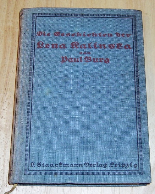 Burg, Paul: Die Geschichten der Lena Kalinska. Ein Roman aus d. deutschen Ostmark. Leipzig: Staackmann, 1915. 8. 332 S., altdeutsche Schrift. Ln. Deutliche Gebrauchsspuren. Einband fleckig u. z.T. verblichen. Kapitale u. Einbandecken bestoßen, Schnitt gebräunt u. fleckig.