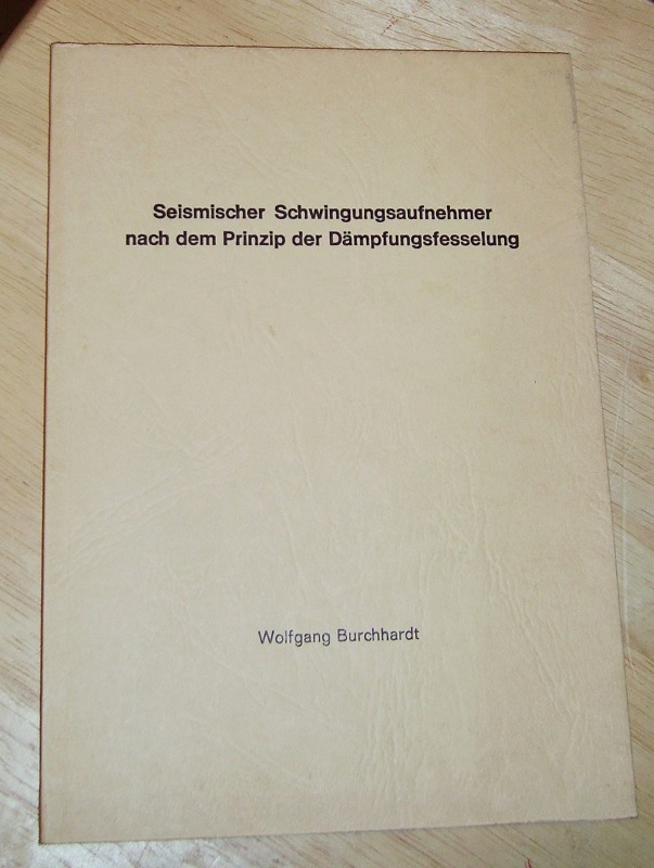 Burchhardt, Wolfgang: Seismischer Schwingungsaufnehmer nach dem Prinzip der Dämpfungsfesselung. Von der Fakultät für Elektrotechnik der Rheinisch-Westfälischen Technischen Hochschule Aachen zur Erlangung des akademischen Grades eines Doktor-Ingeneurs genehmigte Dissertation. Aachen: Fotodruck J. Mainz 1981 21 cm. 100 S. Ill., graph. Darst. Kart. Leichte Gebrauchsspuren. Umschlag etw. angeschmutzt.