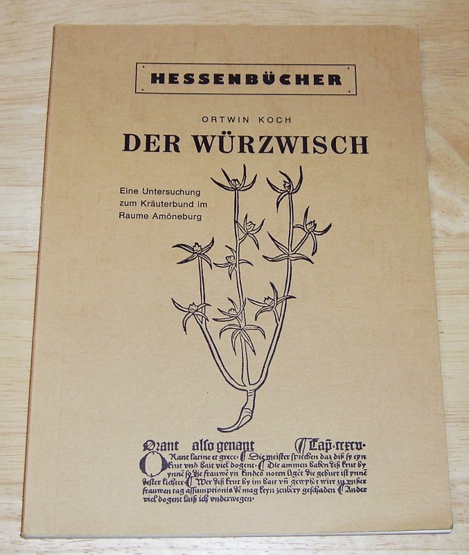 Koch, Ortwin: Der Würzwisch. Eine Untersuchung zum Kräuterbund im Raume Amöneburg. Schönstadt: Burgwald-Verl., 1981. 21 cm. 111 S. Ill., graph. Darst. Kart. Vordere Umschlagecke mit Knickspur, Name a. V., Schnitt gebräunt. Gut erhalten. Hessenbücher, Nr. 8.