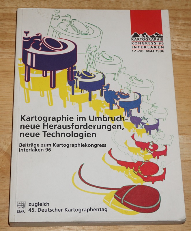 Kartographie im Umbruch. neue Herausforderungen, neue Technologien ; Beiträge zum Kartographiekongress Interlaken 96, [12. – 18. Mai 1996]; [zugleich 45. Deutscher Kartographentag]. Zürich, Schweizer. Ges. für Kartographie, 1996. 24 cm, 359 S. Ill., graph. Darst., Kt. Kart. Vordere Umschlagecke mit Knickspur, sonst gut erhalten. Kartographische Publikationsreihe, 14.