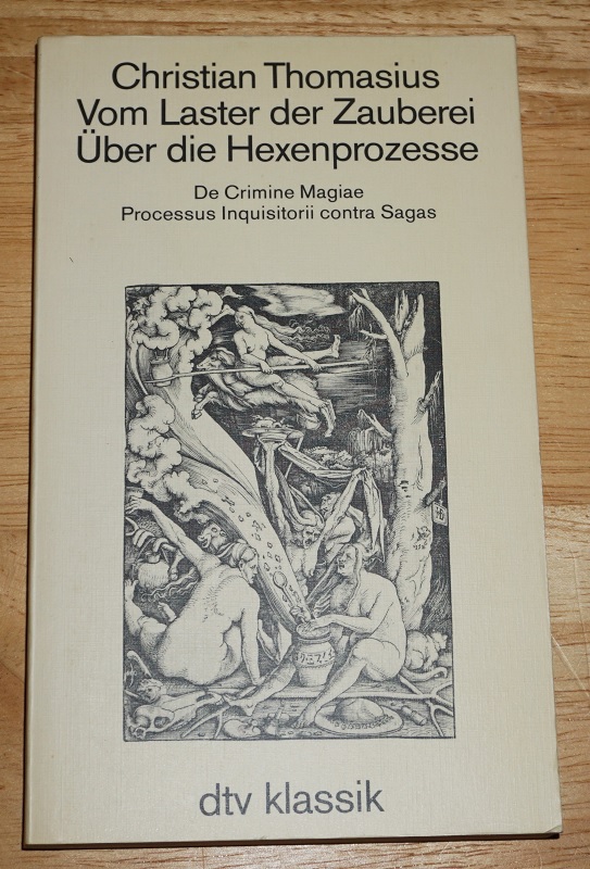 Thomasius, Christian: Vom Laster der Zauberei. = De criminae magiae. Unveränd. Nachdr. d. Ausg. Weimar, Böhlau, 1967. München: Dt. Taschenbuch-Verl., 1986. 18 cm. 232 S. TB. Leichte Gebrauchsspuren. Schnitt etw. gebräunt. dtv, 2170 : dtv-Klassik : Literatur, Philosophie, Wissenschaft.