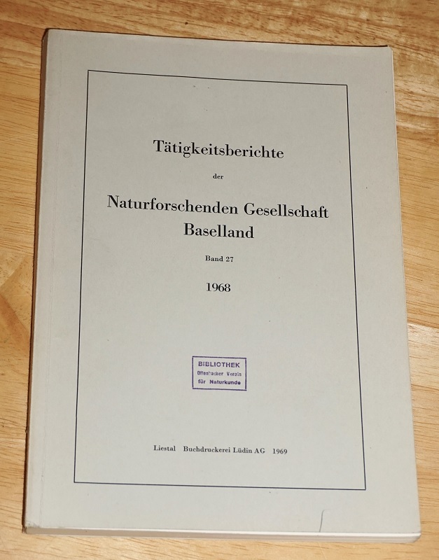 ![]() Tätigkeitsberichte der Naturforschenden Gesellschaft Baselland Band 27. Berichtsjahr 1968.  |