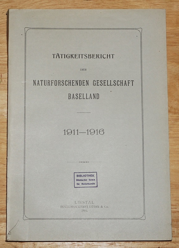 ![]() Tätigkeitsberichte der Naturforschenden Gesellschaft Baselland Band 1911-1916.  |