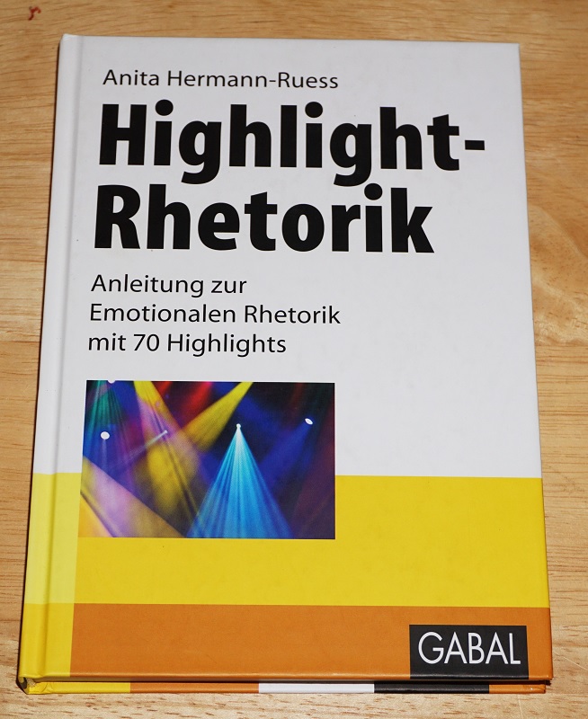Hermann-Ruess, Anita: Highlight-Rhetorik. Anleitung zur emotionalen Rhetorik mit 70 Highlights. Offenbach: GABAL, 2010. 22 cm, 223 S. Ill., graph. Darst. Ppd. Leichte Gebrauchsspuren.