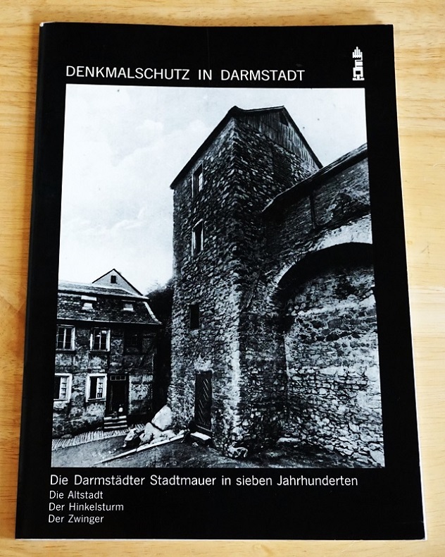 Heiss, Nikolaus (Hrsg.): Die Darmstädter Stadtmauer in sieben Jahrhunderten. die Altstadt, der Hinkelsturm, der Zwinger. Darmstadt: Magistrat der Stadt Darmstadt, Kulturamt – Denkmalschutz, 1996. 30 cm. 67 S. zahlr. Ill., graph. Darst., Kt. Geheftet. Leichte Gebrauchsspuren. Denkmalschutz in Darmstadt, Heft 6.