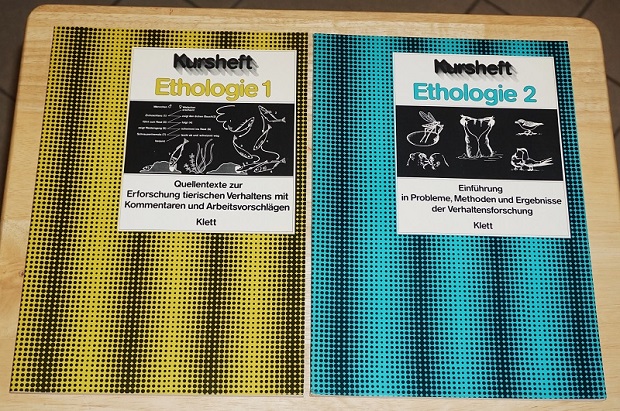 Schrooten, Gertrud u. Blume, Dieter: Kursheft Ethologie 1 +2 + Kurskommentar. 1: Quellentexte zur Erforschung tierischen Verhaltens mit Kommentaren und Arbeitsvorschlägen / von Gertrud Schrooten / 2: Einführung in Probleme, Methoden und Ergebnisse der Verhaltensforschung von Dieter Blume / 3: Quellentexte und Einführung. 1. Aufl., 1. [Dr.]. 3 Bände. Stuttgart: Klett, 1981 / 1983 30 cm. 84 / 84 / 113 S. graph. Darst. Kart. Gut erhalten. Schnitte gebräunt u. oben etw. braunfleckig. Kurskommentar: untere Ecke bestoßen.