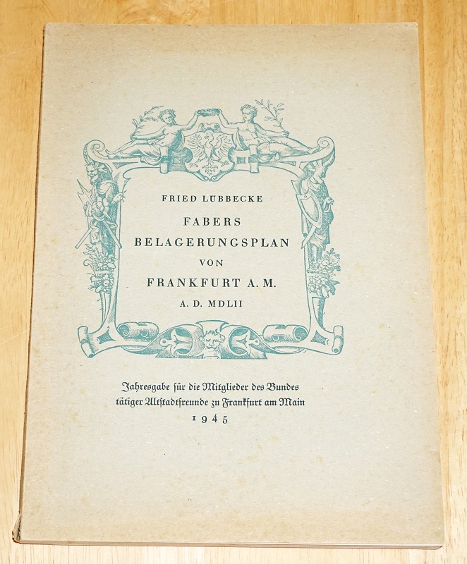 Lübbecke, Fried: Fabers Belagerungsplan von Frankfurt a.M. A.D. MDLII. Jahresgabe für d. Mitglieder d. Bundes Tätiger Altstadtfreunde zu Frankfurt am Main. Frankfurt am Main: Bund Tätiger Altstadtfreunde, 1945. 27 cm. 71 S. Ill. Kart. Umschlag u. Schnitt gebräunt u. braunfleckig, unteres Kapital etw. beschädigt. Sonst gut erhalten.