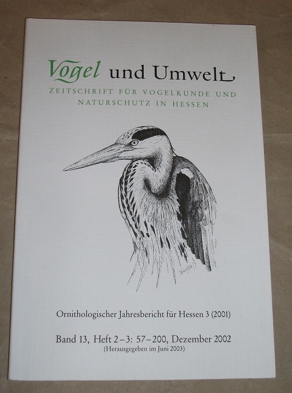 Vogel und Umwelt Band 13, Heft 2-3 Dezember 2002. Zeitschrift für Vogelkunde und Naturschutz in Hessen. Ornithologischer Jahresbericht für Hessen 3 (2001). Wiesbaden: Hessisches Ministerium für Landwirtschaft, Forsten und Naturschutz 2003 24 cm, S. 57-200. Kart. Leichte Gebrauchsspuren. ISSN: 0173-0266.