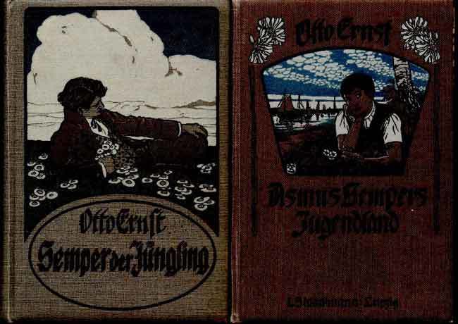 Ernst, Otto: Semper der Jüngling / Asmus Sempers Jugendland. Ein Bildungsroman / Der Roman einer Kindheit. 51. – 55. Tsd. / 81.-85. Tsd. 2 Bände Leipzig: L. Staackmann 1912 18 cm, 452 / 358 S. Altdeutsche Schrift., Kopffarbschnitt. Ill. Ln. Etwas schief gelesen, Schnitt etw. angeschmutzt und gebräunt, Ecken u. Kapitale etw. bestoßen.
