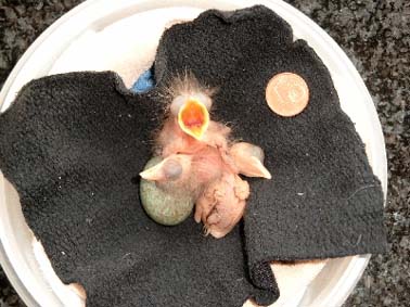 Verwaiste Vogelbrut. Die Eltern fielen einer Katze zum Opfer. (Bild: Pirmin Ehrhardt) |