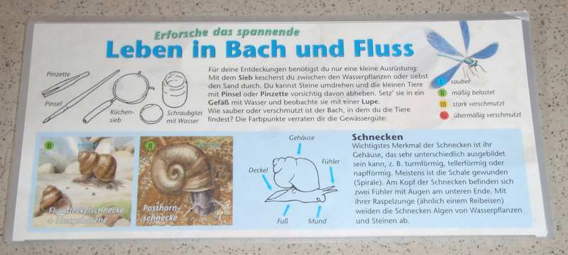 Erforsche das spannende Leben in Bach und Fluss. Beispiele für Fließgewässer-Lebewesen. cm, Laminierte Tafel im Din A4-Format, zwei mal gefaltet. Neuware.