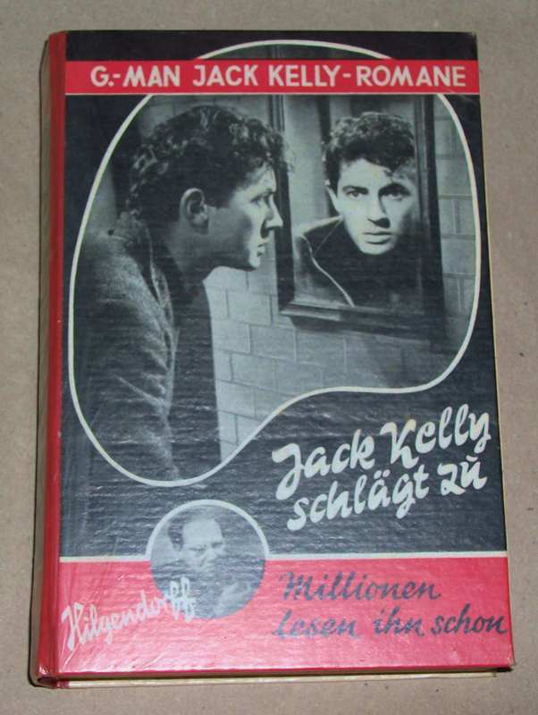 Hilgendorff, Hermann: Jack Kelly schlägt zu. Kriminal-Roman. München: Münchmeyer (1952) 19 cm, 256 S., HLn. Mit Gebrauchsspuren. Schief gelesen, Ecken bestoßen, Schnitt stockfleckig und gebräunt, leeres Vorsatzblatt entfernt, Widmung im Vorsatz.