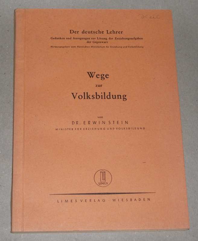 Stein, Erwin: Wege zur Volksbildung. Wiesbaden: Limes (1949) 21cm, 115 S, Kart. Am Rücken etw. verblichen, Papier gebräunt. Umschlagecke mit Knickspur, Name a. Umschlag. Der deutsche Lehrer Heft 11/12.